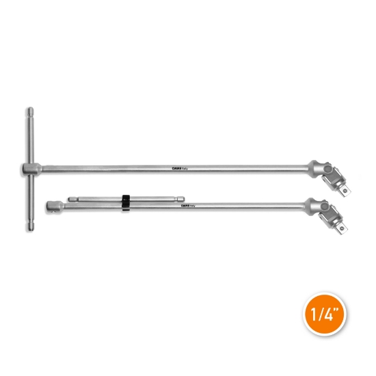 Chiave a T snodata 1/4" - quadro maschio con snodo e asta frizionata - acciao al cromo vanadio- cromata